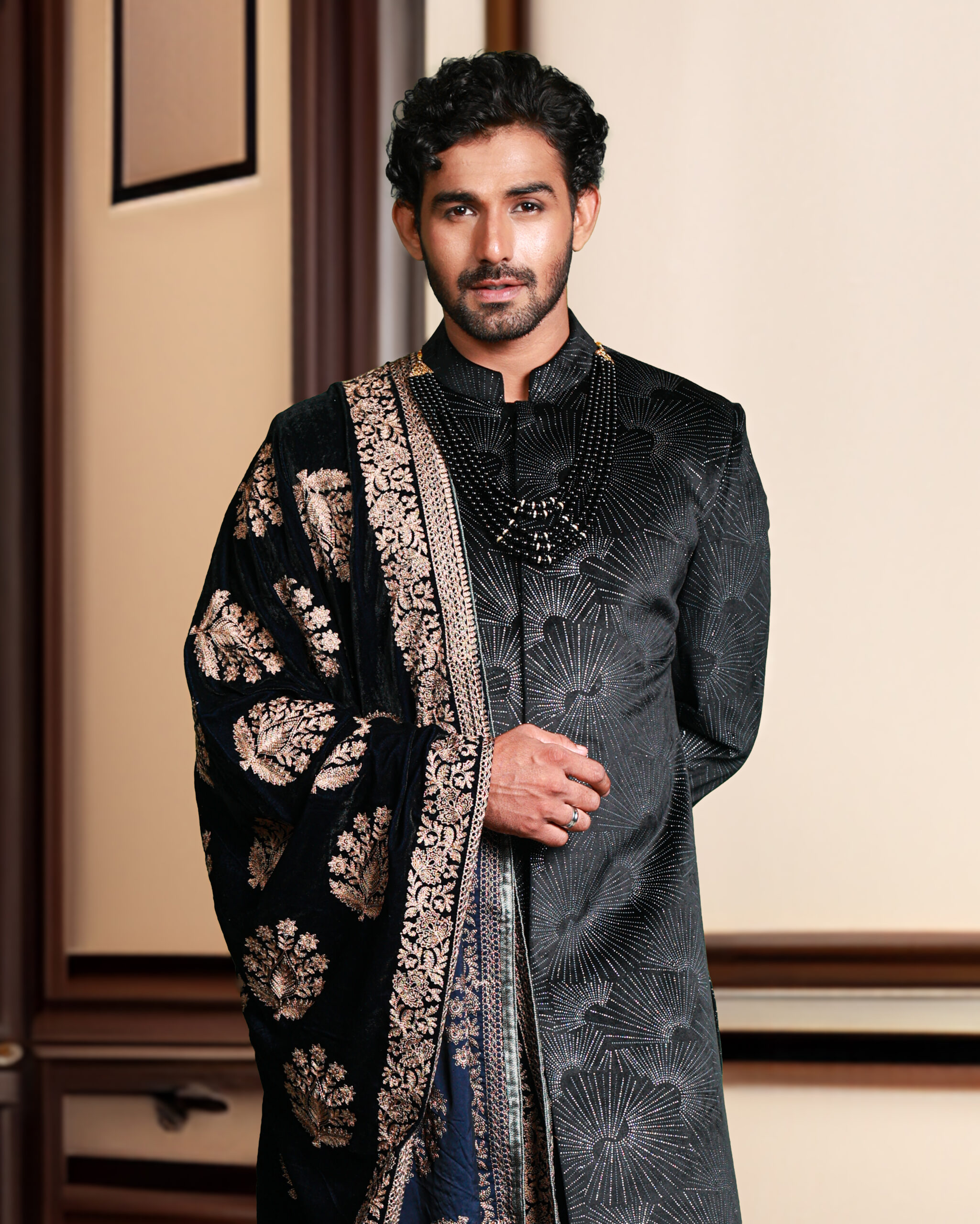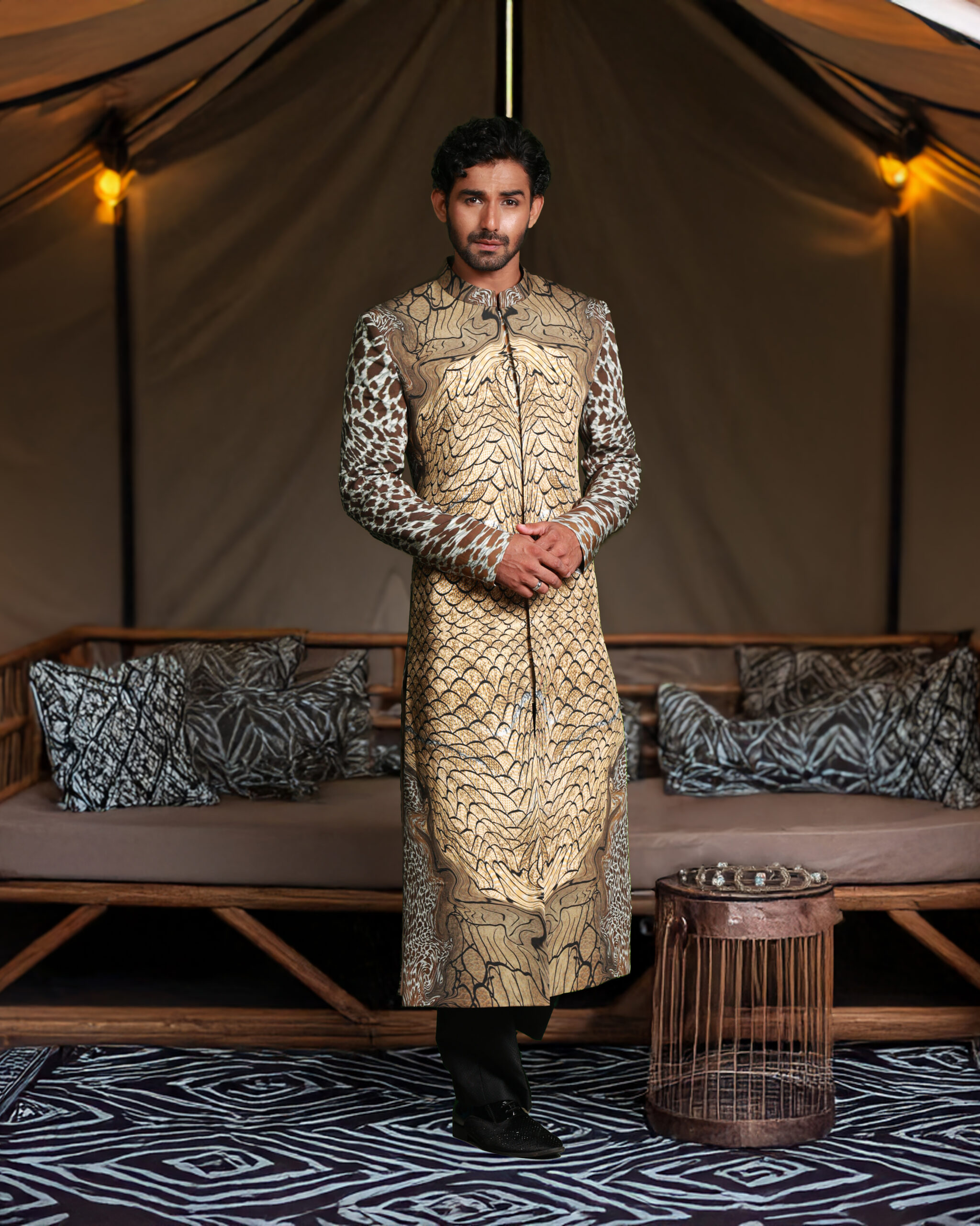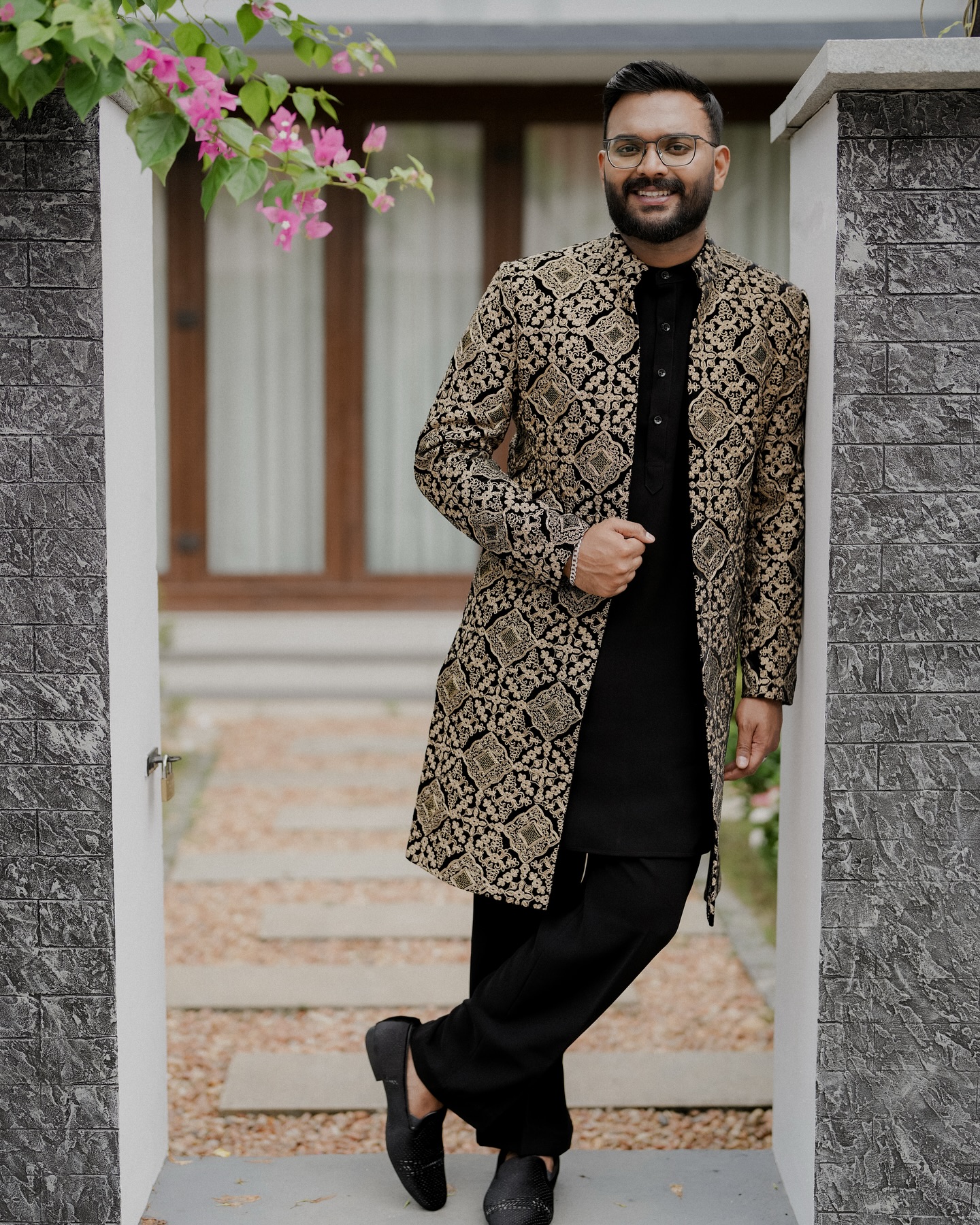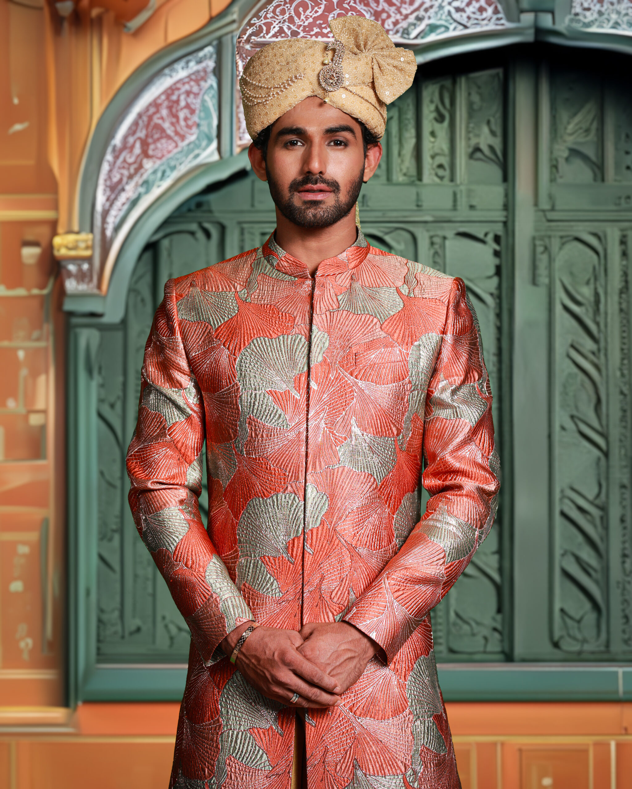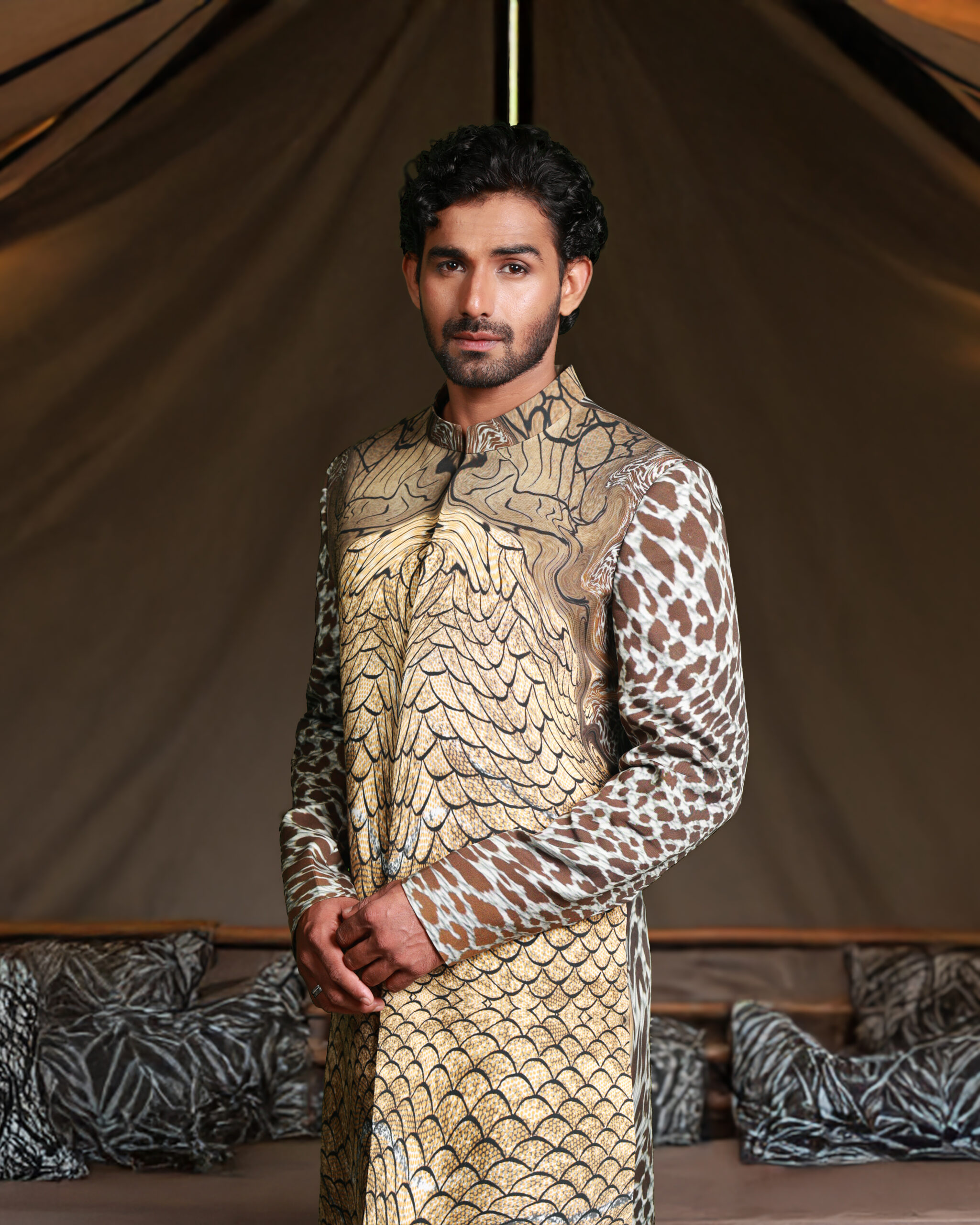 The Sherwani collection from House of Messcal reflects the perfect fusion of royal tradition and modern elegance. Each Sherwani is crafted with exquisite attention to detail, featuring luxurious fabrics, intricate embroidery, and sophisticated cuts that embody timeless grandeur. Designed for the discerning groom, our Sherwanis celebrate India's rich cultural heritage while adding a contemporary flair that enhances every special occasion. At House of Messcal, we ensure every piece not only defines style but also tells a story of grace, confidence, and regal charm.