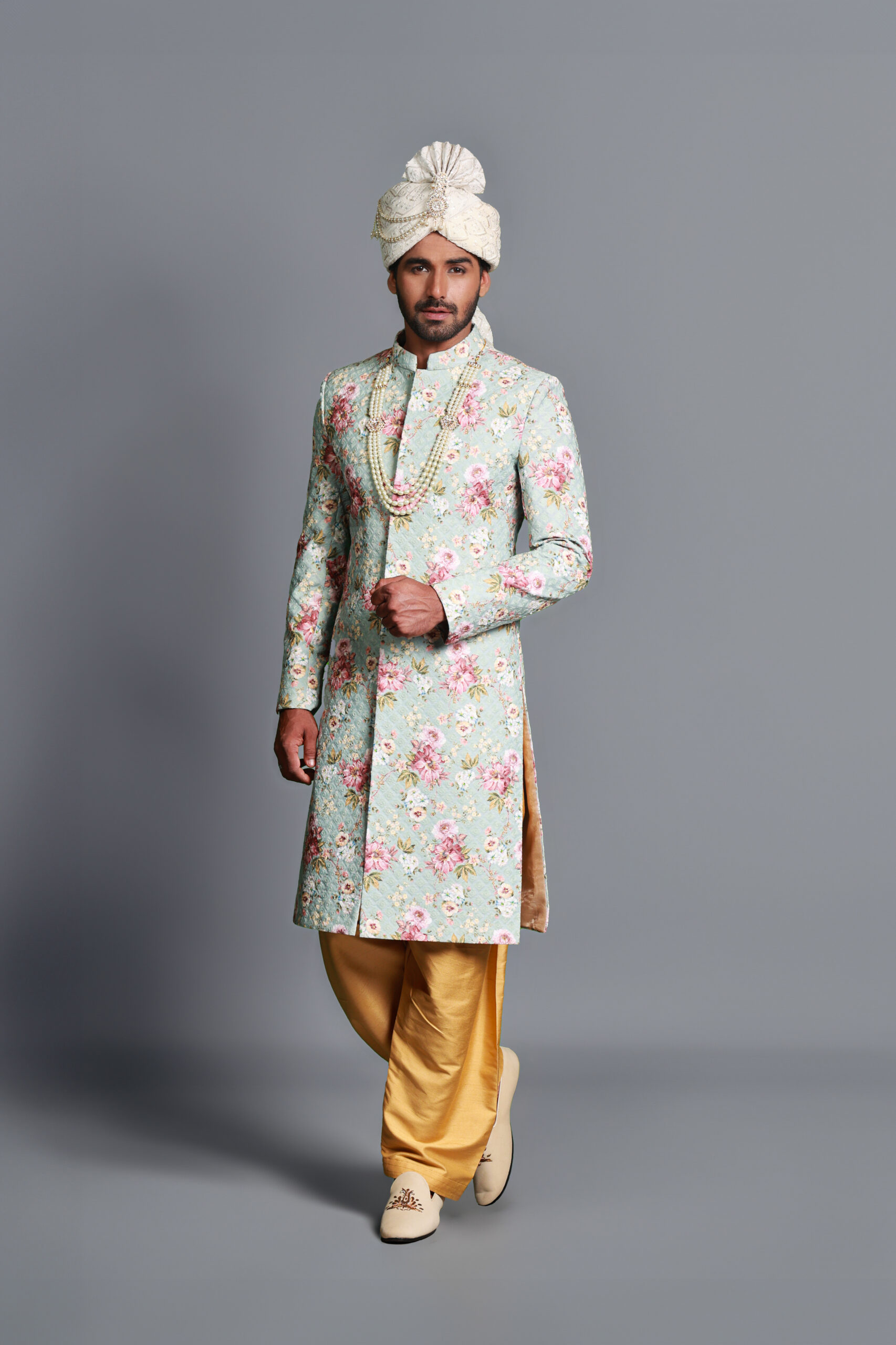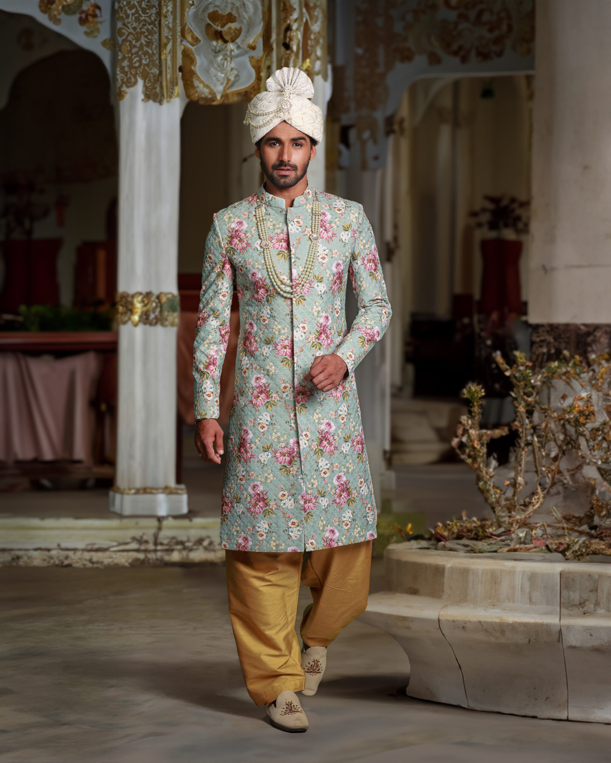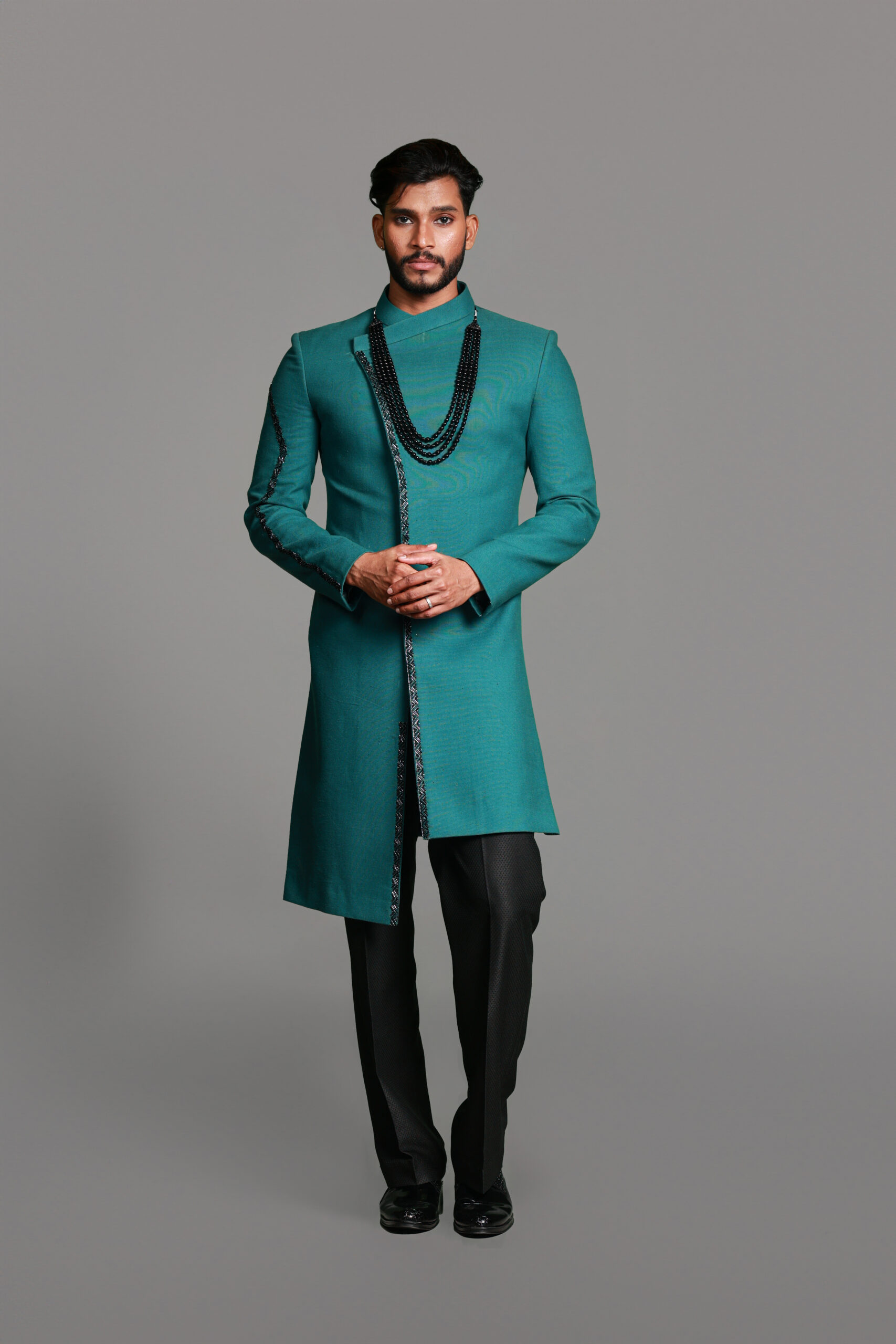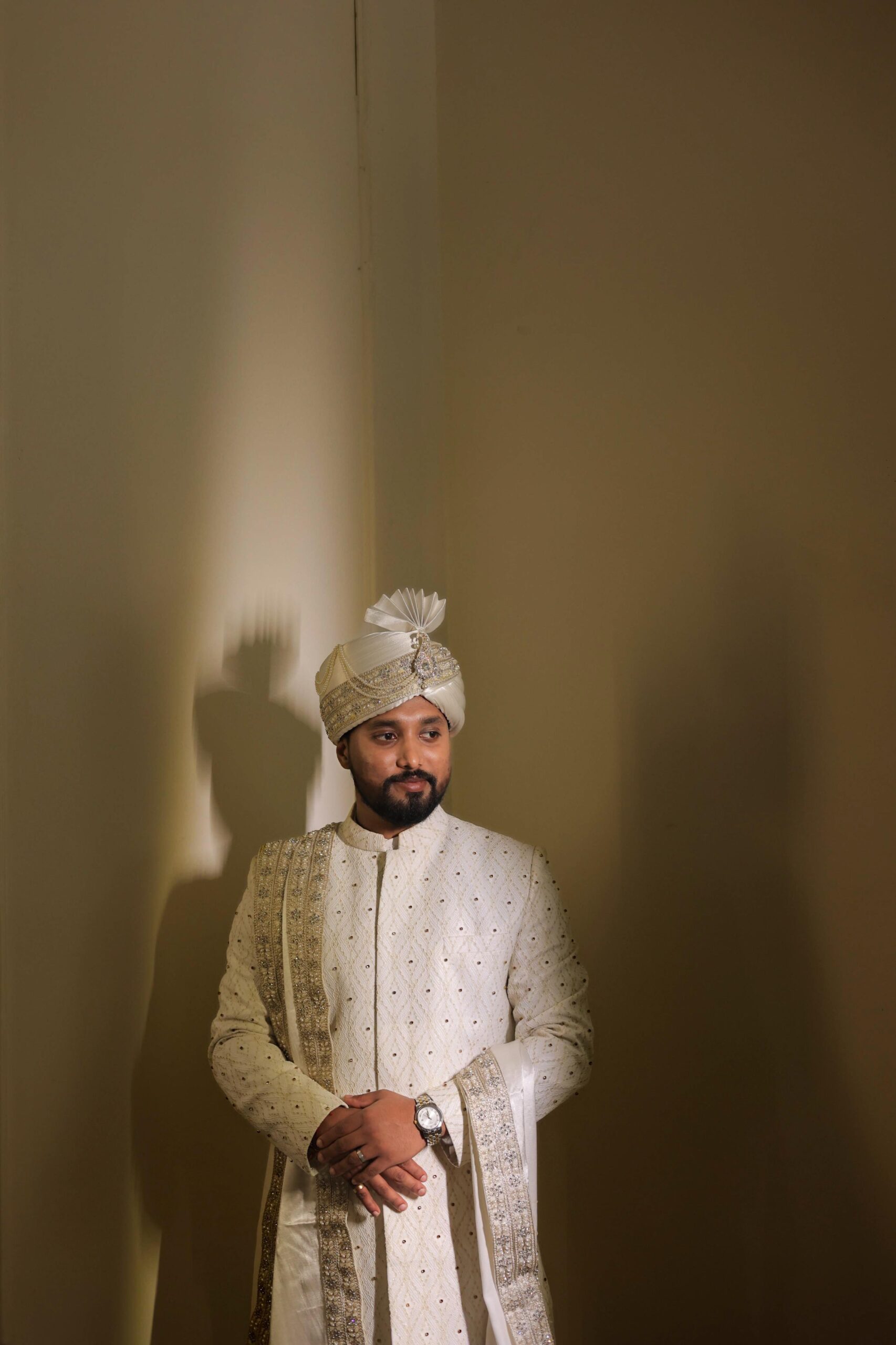 The Sherwani collection from House of Messcal reflects the perfect fusion of royal tradition and modern elegance. Each Sherwani is crafted with exquisite attention to detail, featuring luxurious fabrics, intricate embroidery, and sophisticated cuts that embody timeless grandeur. Designed for the discerning groom, our Sherwanis celebrate India's rich cultural heritage while adding a contemporary flair that enhances every special occasion. At House of Messcal, we ensure every piece not only defines style but also tells a story of grace, confidence, and regal charm.