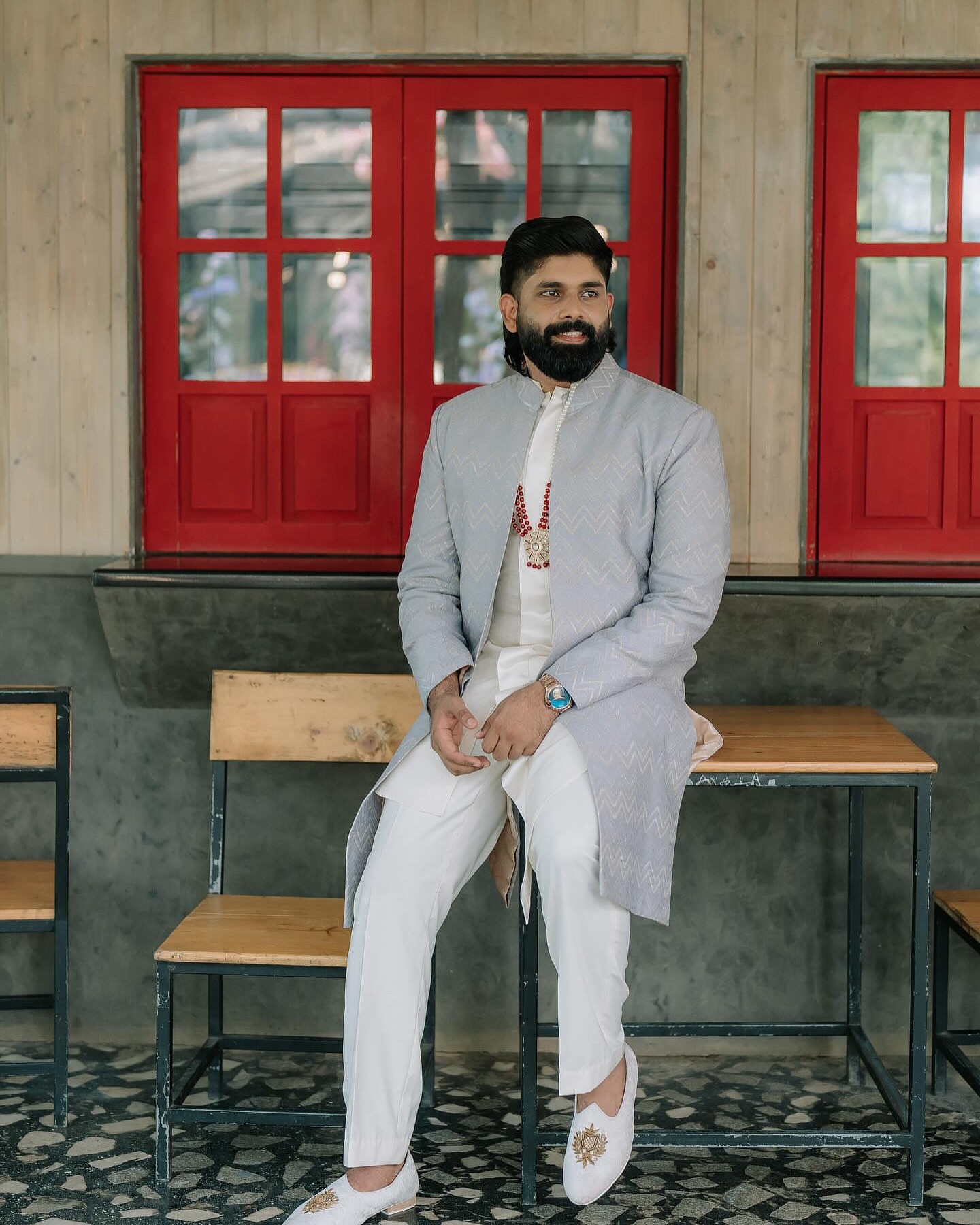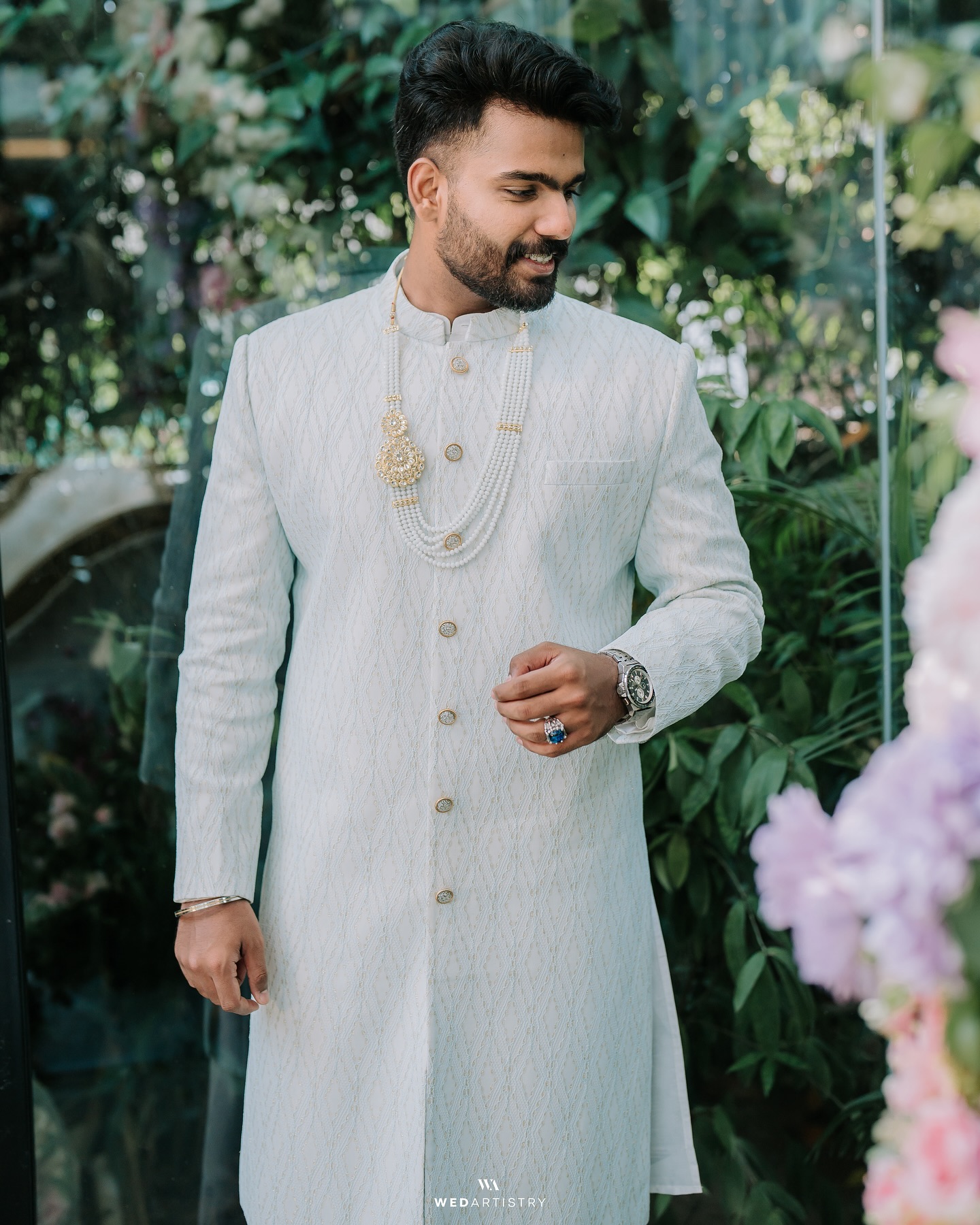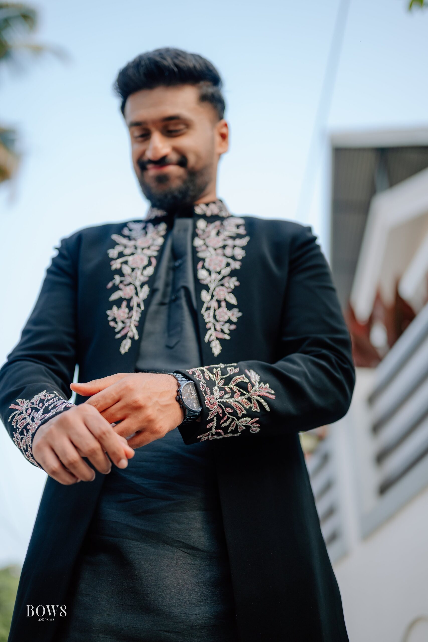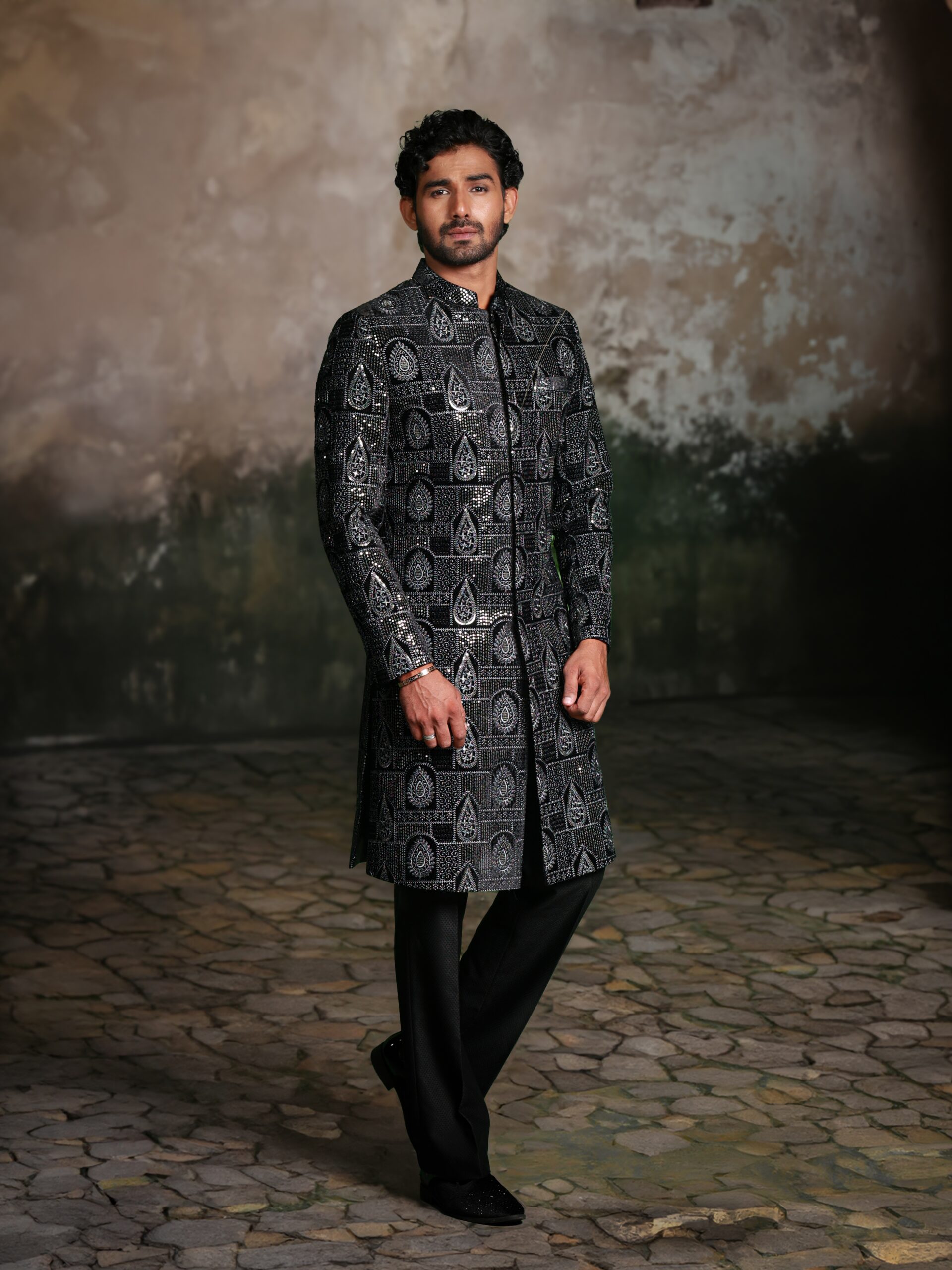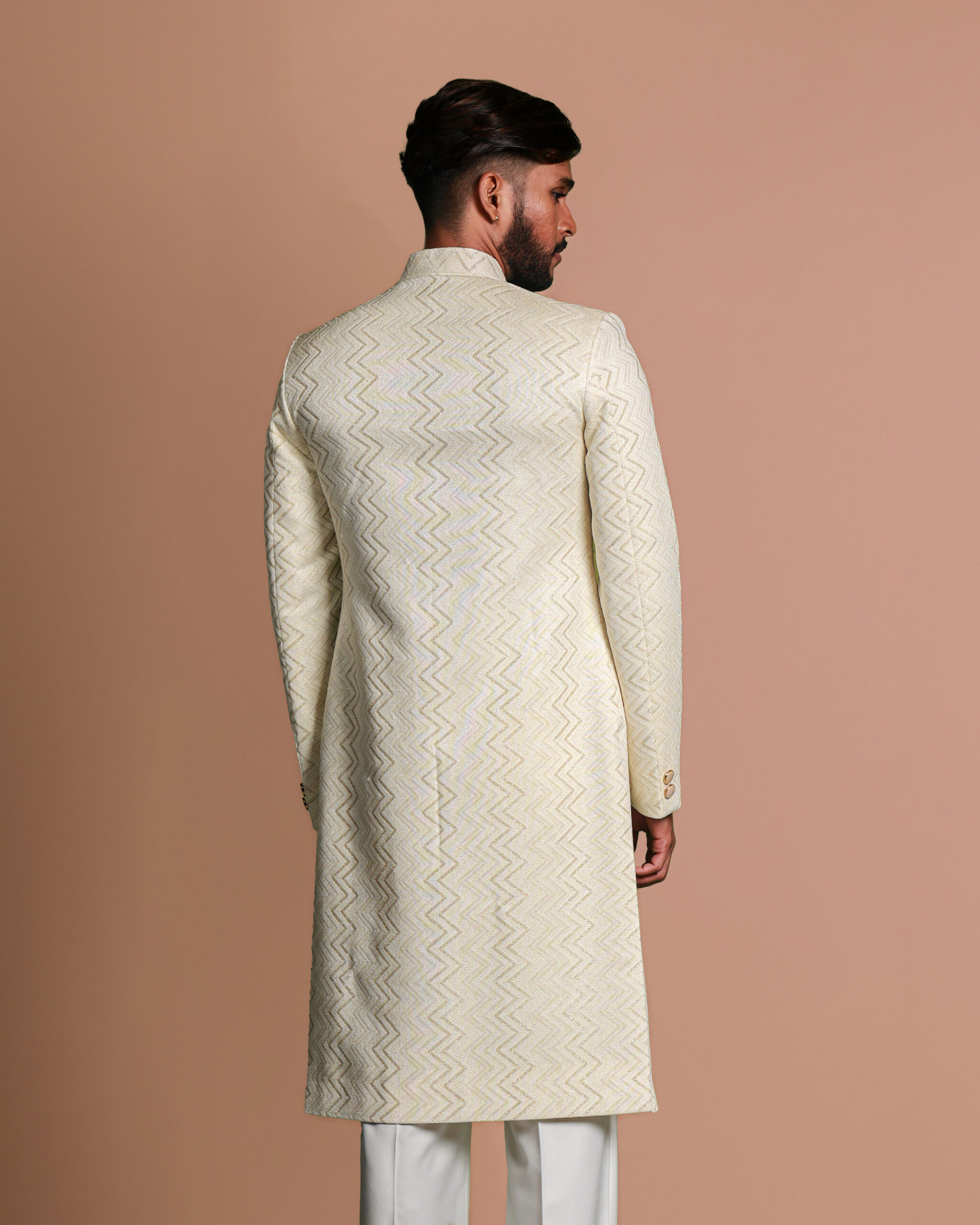 The Sherwani collection from House of Messcal reflects the perfect fusion of royal tradition and modern elegance. Each Sherwani is crafted with exquisite attention to detail, featuring luxurious fabrics, intricate embroidery, and sophisticated cuts that embody timeless grandeur. Designed for the discerning groom, our Sherwanis celebrate India's rich cultural heritage while adding a contemporary flair that enhances every special occasion. At House of Messcal, we ensure every piece not only defines style but also tells a story of grace, confidence, and regal charm.